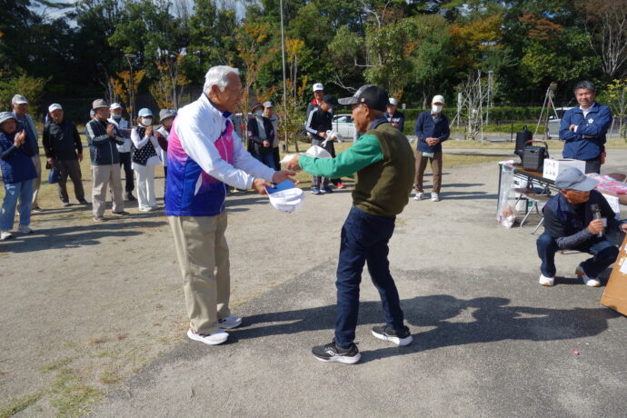 秋晴れの中「春日南地区グラウンドゴルフ大会」が開催されました。今年も山水社が協賛させていただいておりますので、参加させていただきプレーを楽しませていただきました。