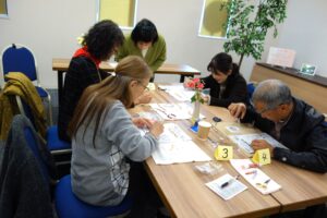 今回は「はっぴぃさぽ~と」のお二人にご指導いただき、ビーズのブレスレットを作成いたしました。