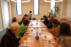 お一人お一人記念撮影をした後は、楽しいカフェタイム(^^♪です。それぞれの地域での活動の情報交換など、いつもながら話に花が咲いておりました。
