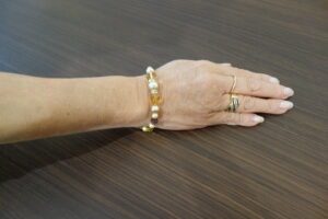 細かい作業に悪戦苦闘し、先生にお手伝いいただきながら、一時間後には素敵なブレスレットが出来上がりました♪