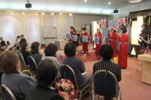 12月12日(金) 12月の山水社カフェイベントとして『オカリナコンサート』を開催いたしました。春日市で活躍されている「スイートピー」の皆さまをお呼びして、演奏していただきました。   オカリナの美しい音色に、皆さま大変聴き入れていらっしゃいました。私たちも日ごろの慌ただしさを忘れさせていただき、本当に癒されてしまいました。(´∀`)             9曲演奏いただきましたが、アンコールの拍手が巻き起こり、急遽追加でもう1曲(^^♪。本当に素敵な時間を過ごさせていただきました。